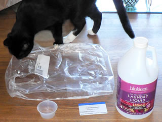 - 1 32-oz bottle Biokleen laundry soap (#2 plastic) and cap. We are using Ecover powdered laundry soap right now that comes in a recycled cardboard box with a cardboard scooper. I know I could make my own laundry soap like Just Ducky does. But please see above comments about time and tiredness and energy.