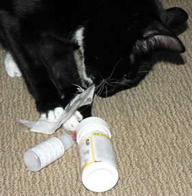 Arya is looking so good. Pity about the morphine. IT is so much fun to see a kitty on drugs! LOL About plastic prescription bottles: The new MacGyver coming up in Ready Made magazine is to find a way to reuse plastic prescription bottles. Got my idea ready to send in!